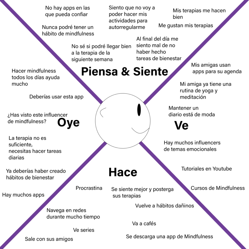 En esta fase realizo un profundo ejercicio de comprender y empatizar por completo con los comportamientos, necesidades y deseos de los usuarios.