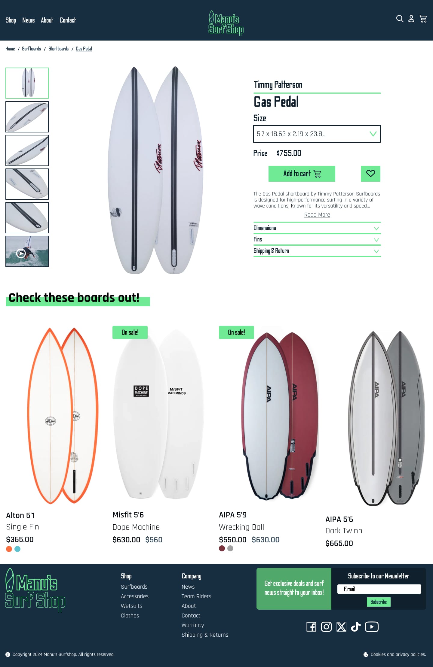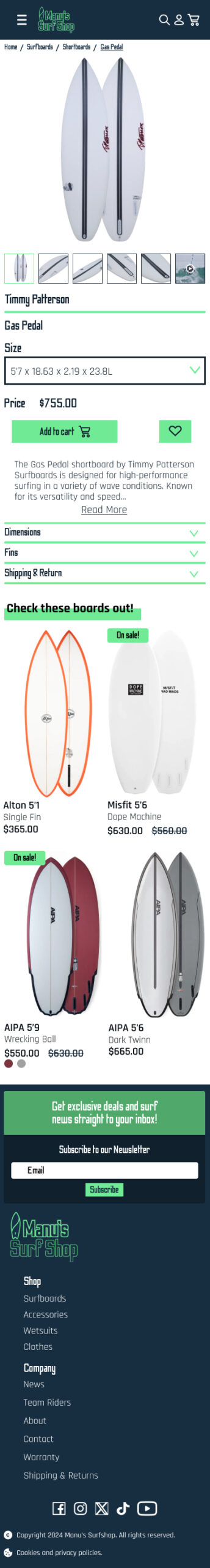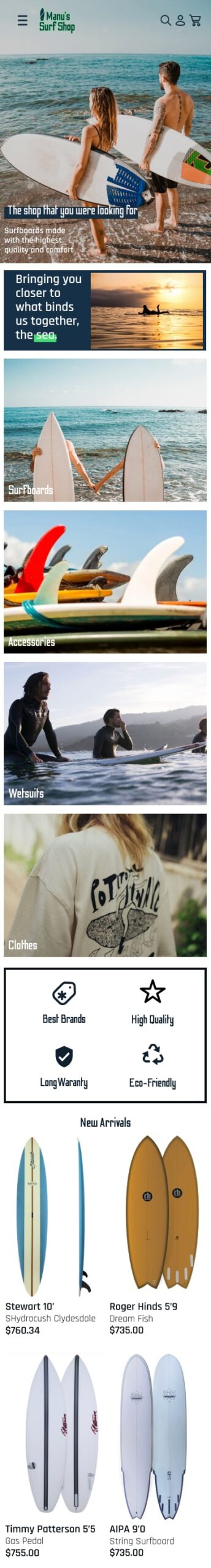 Manu’s Surf Shop is an online store which sells surfboards, accessories, wetsuits and clothing, for clients in California, this eCommerce venture is intended to be exclusively digital and bring close communication, employing a friendly language for the surfing community in this state.