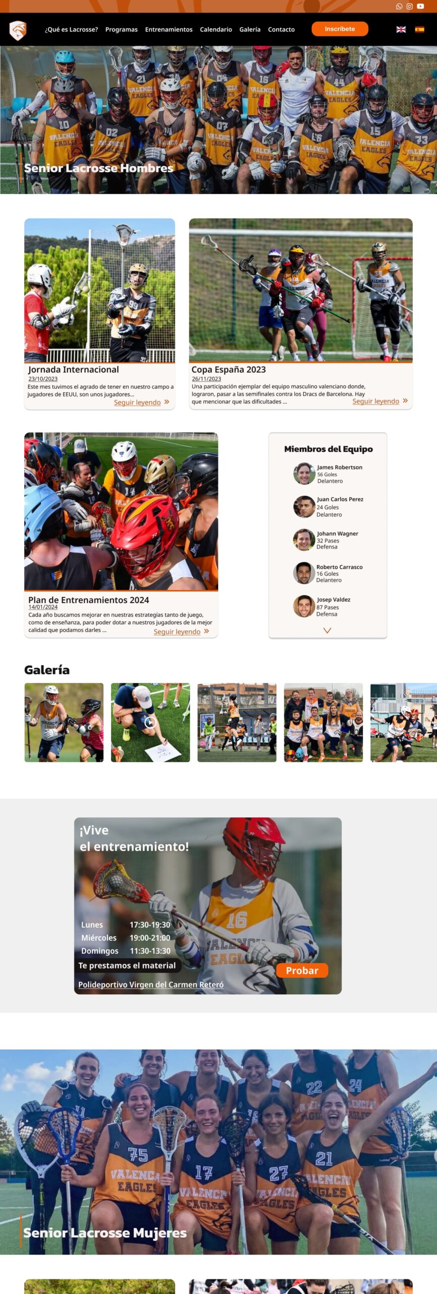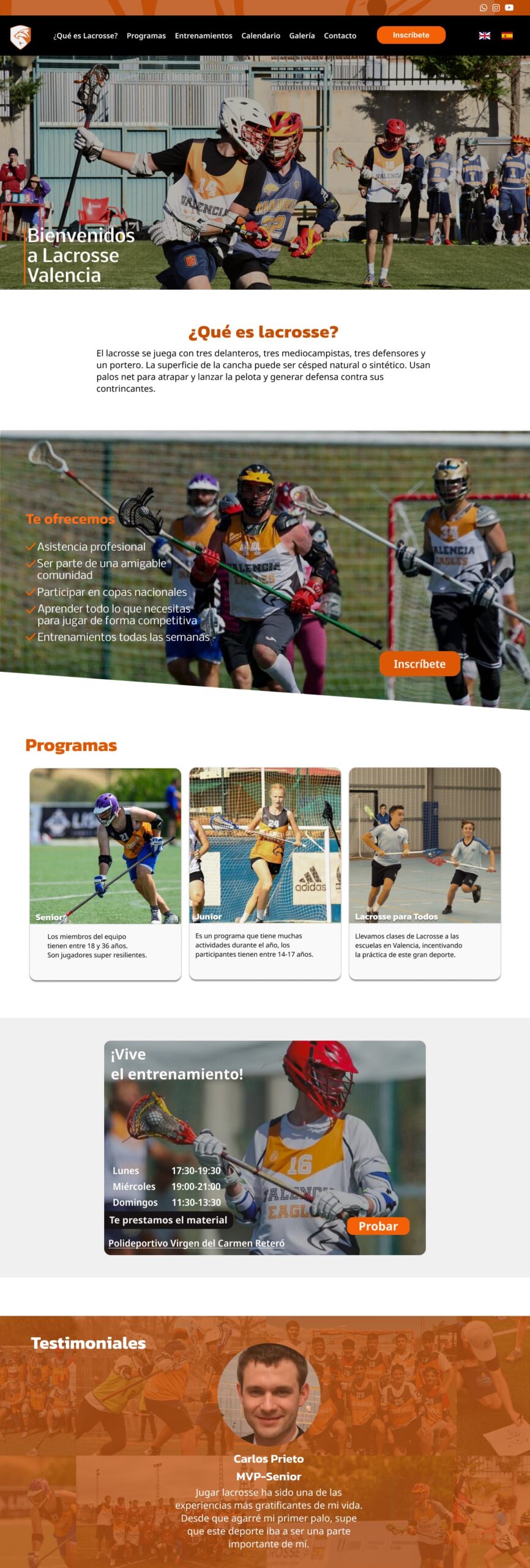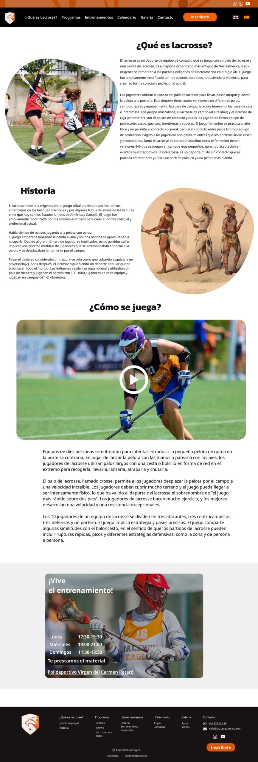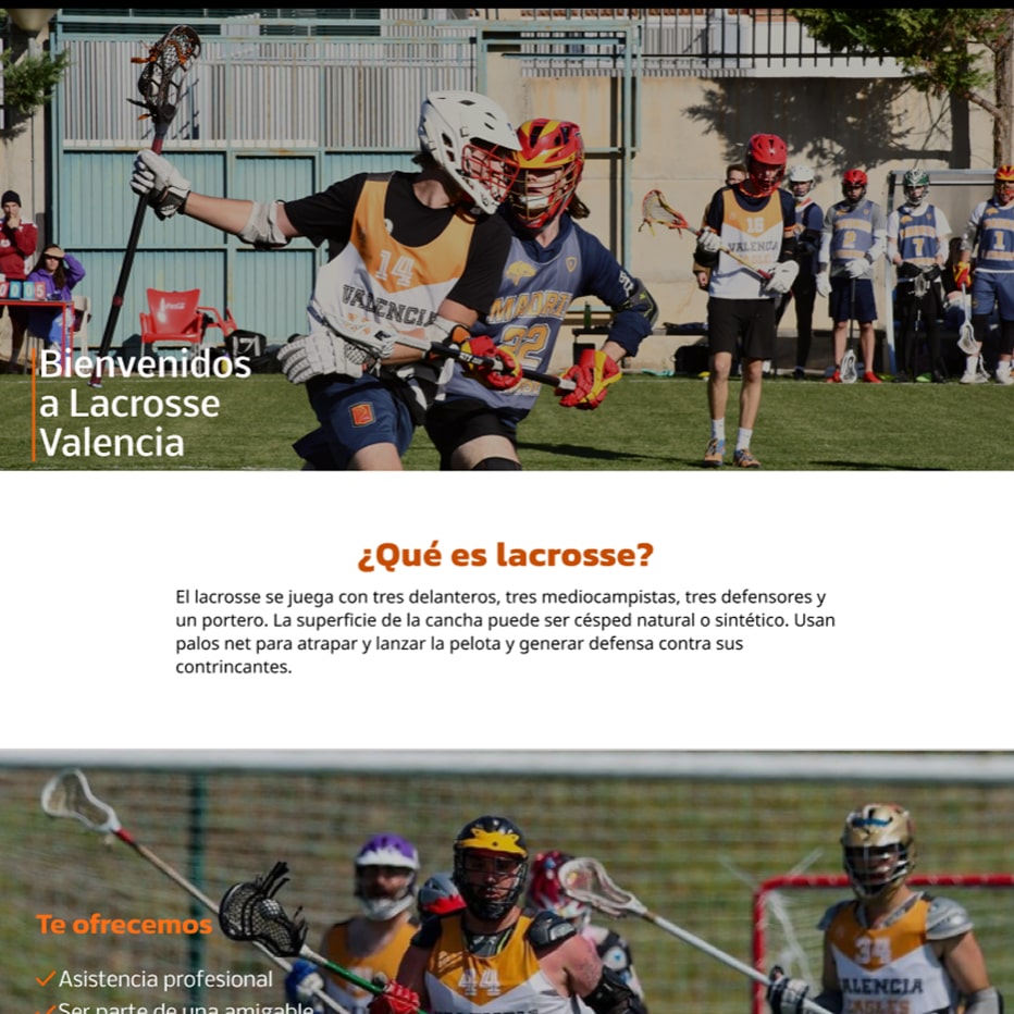 Una página web que explique qué es Lacrosse, los motive a probar un entrenamiento y que a la vez pueda invitar a jugadores extranjeros experimentados en el deporte que viven en Valencia. La web estará en español y en inglés para poder captar a ambos tipos de usuarios.