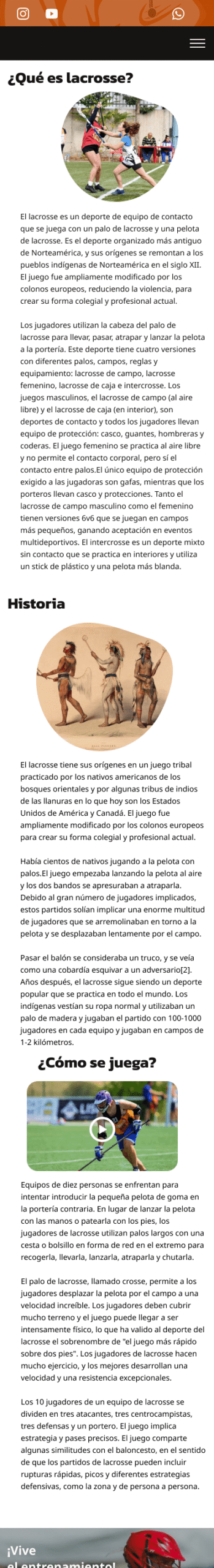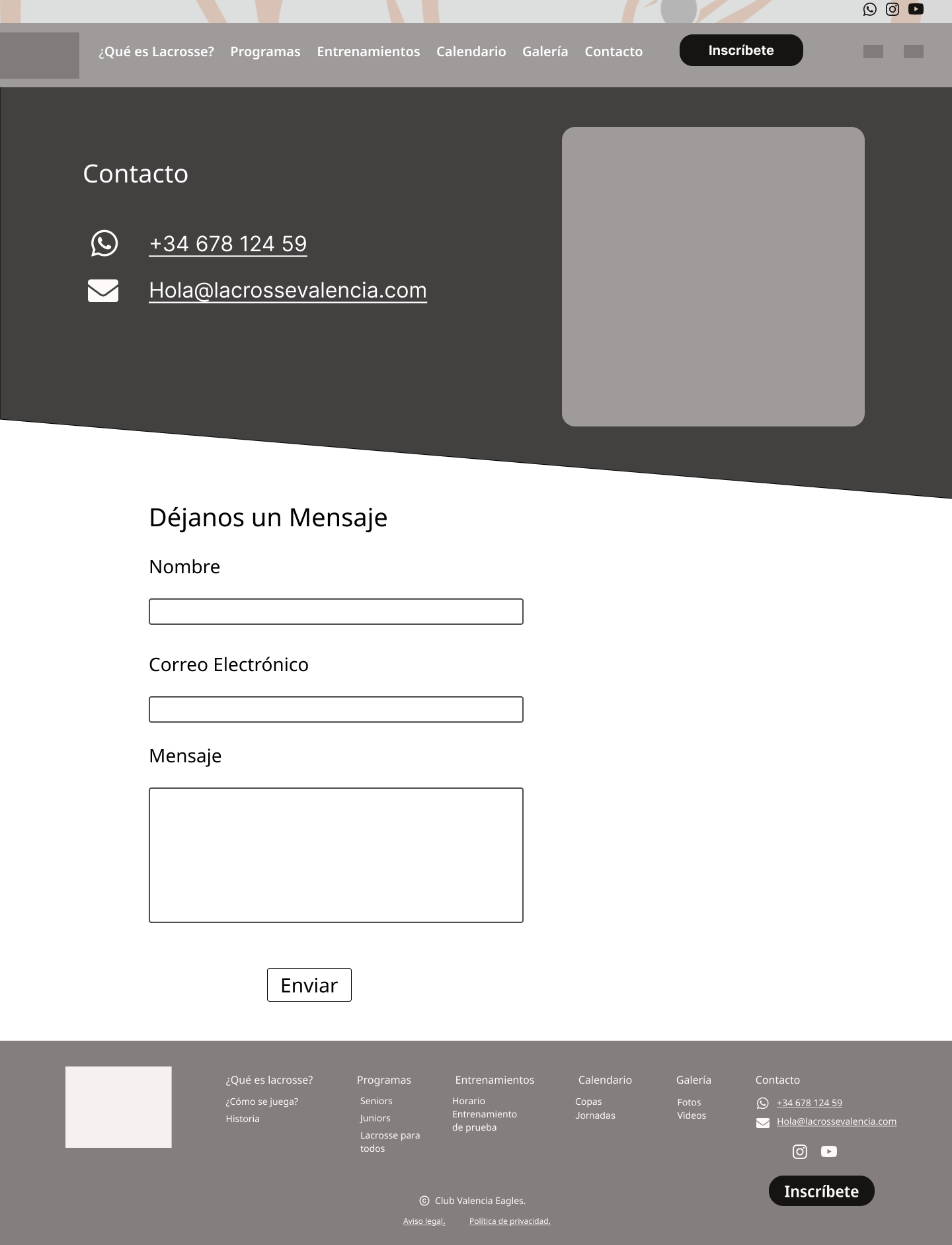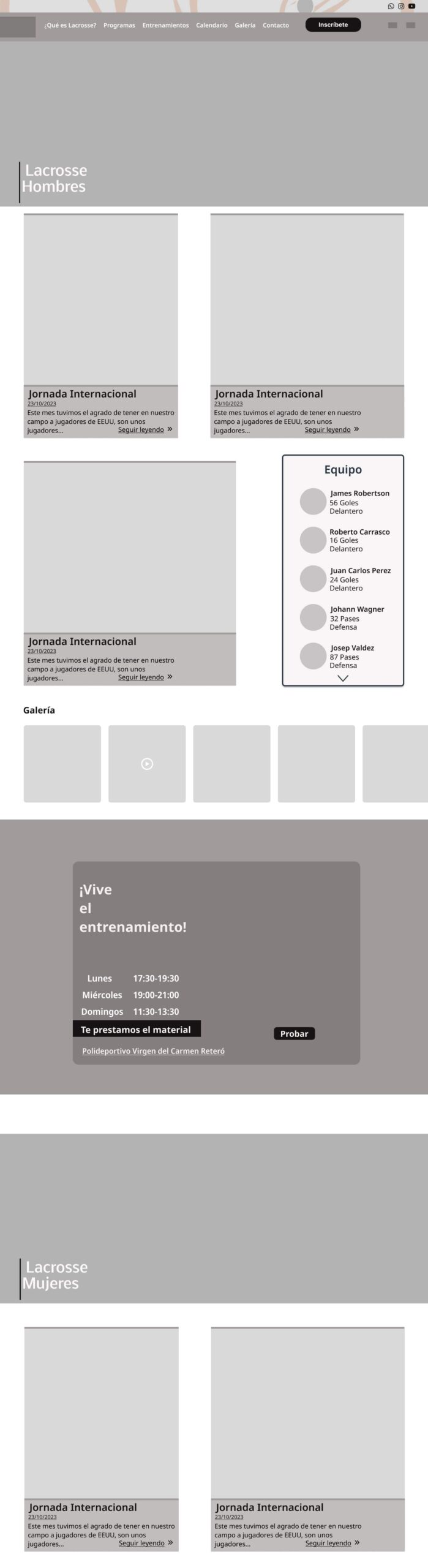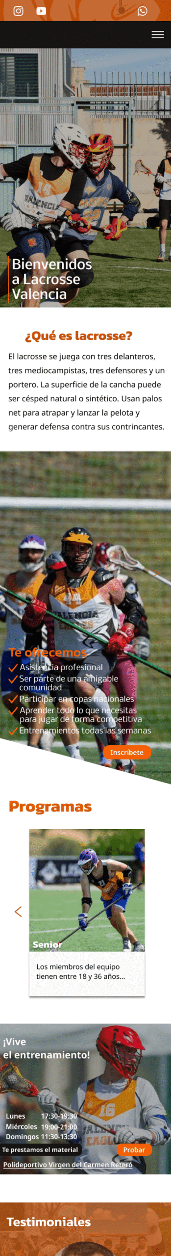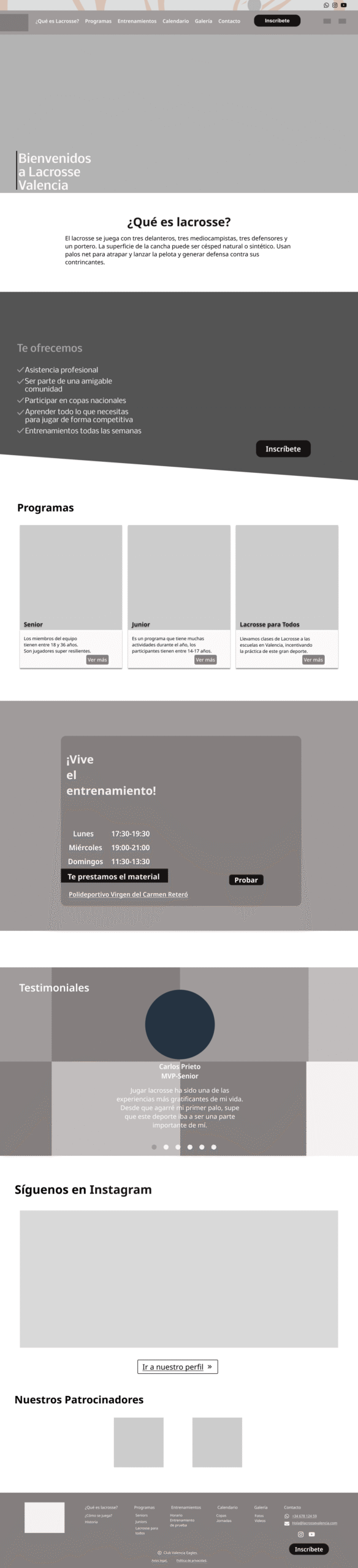 Una página web que explique qué es Lacrosse, los motive a probar un entrenamiento y que a la vez pueda invitar a jugadores extranjeros experimentados en el deporte que viven en Valencia. La web estará en español y en inglés para poder captar a ambos tipos de usuarios.