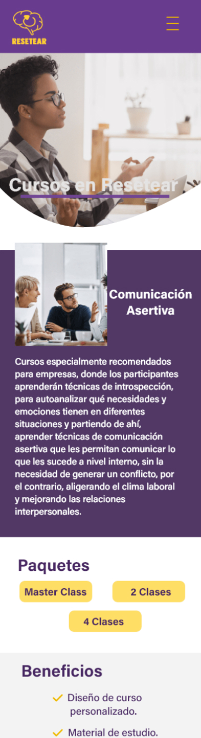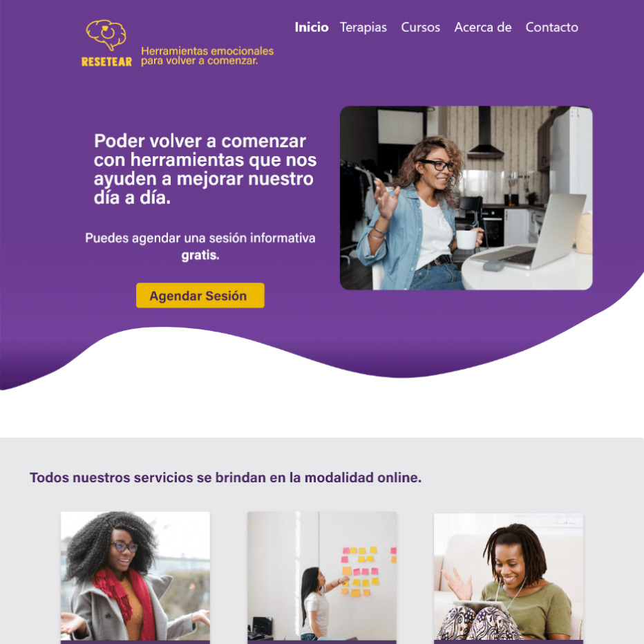 Resetear cuenta con presencia en plataformas de redes sociales, sin embargo carece de presencia en Google a pesar de tener un grupo importante de usuarios de sus servicios que tienen muy favorable conversión al encontrar páginas web que ofrecen terapias y cursos de salud mental en Google a través de una página web que transmita profesionalismo y confianza.